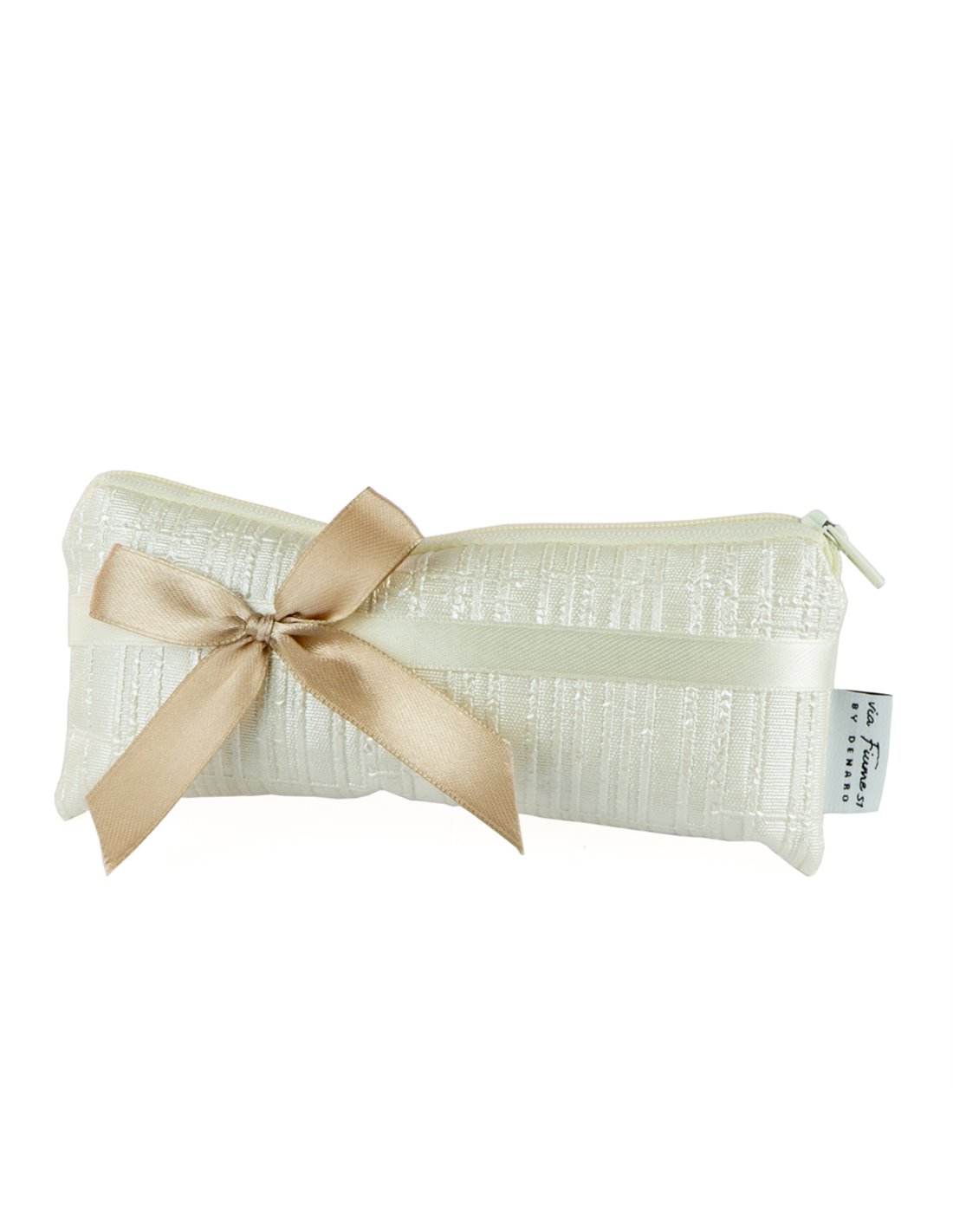Astuccio bomboniera in ecopelle panna. Dotato di cerniera. Il prezzo si riferisce alla confezione da 10 pezzi. Made in Italy.