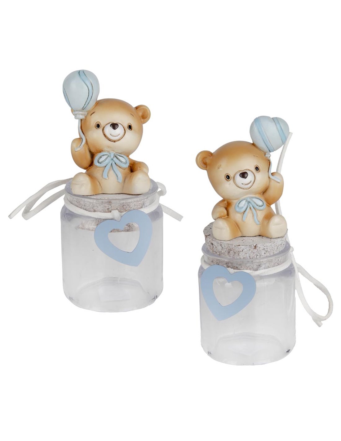 Barattolo Con Orsetto E Cuoricino Celeste (2 PZ)