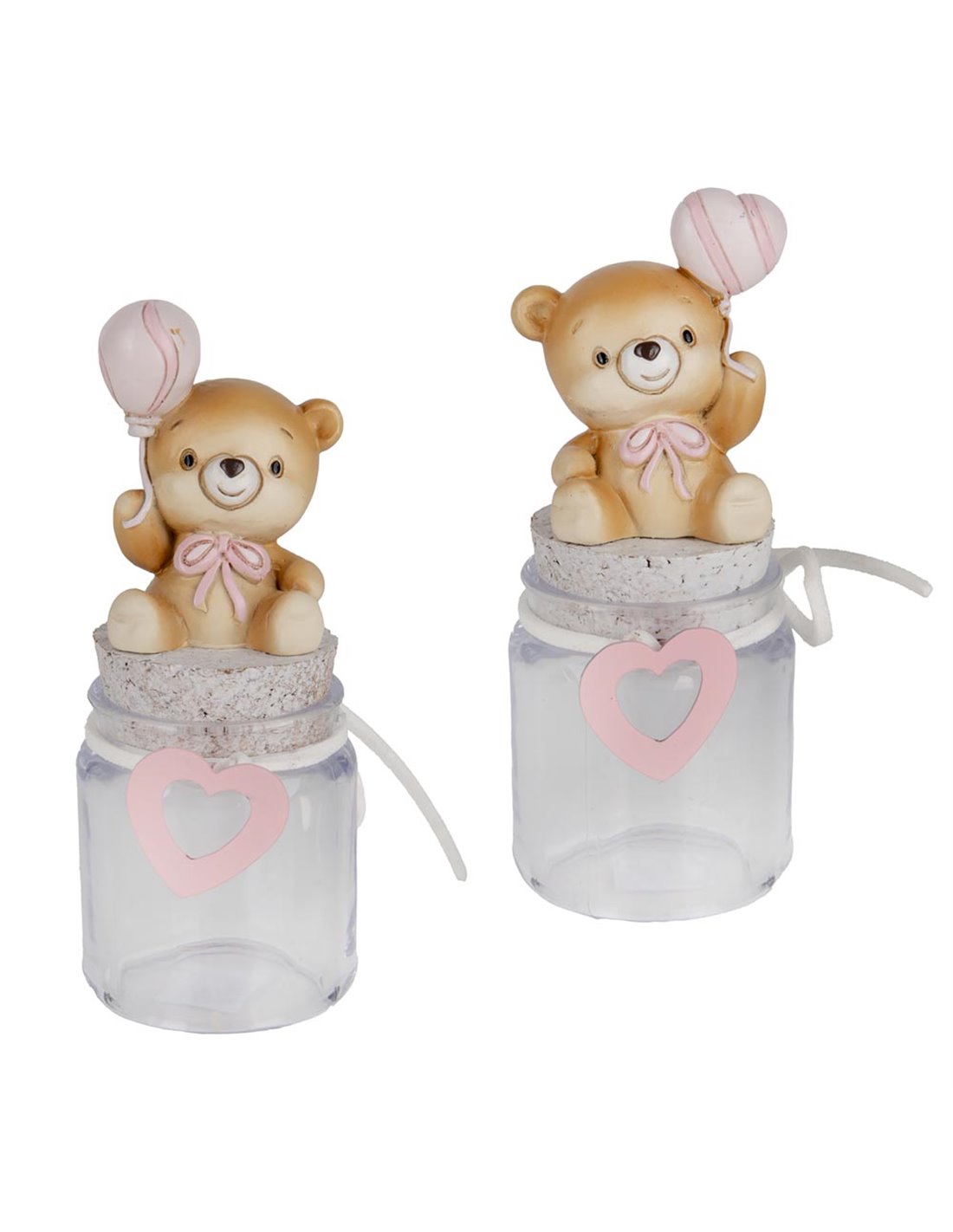Barattolo Con Orsetto E Cuoricino Rosa (2 PZ)