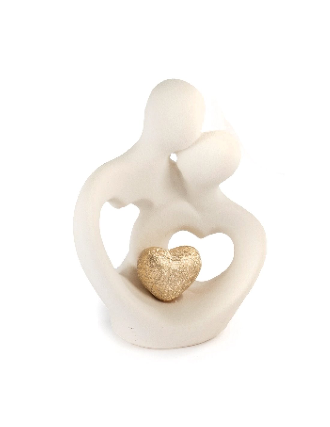 Bomboniera Coppia Innamorata In Porcellana Cuore Oro Con Scatola