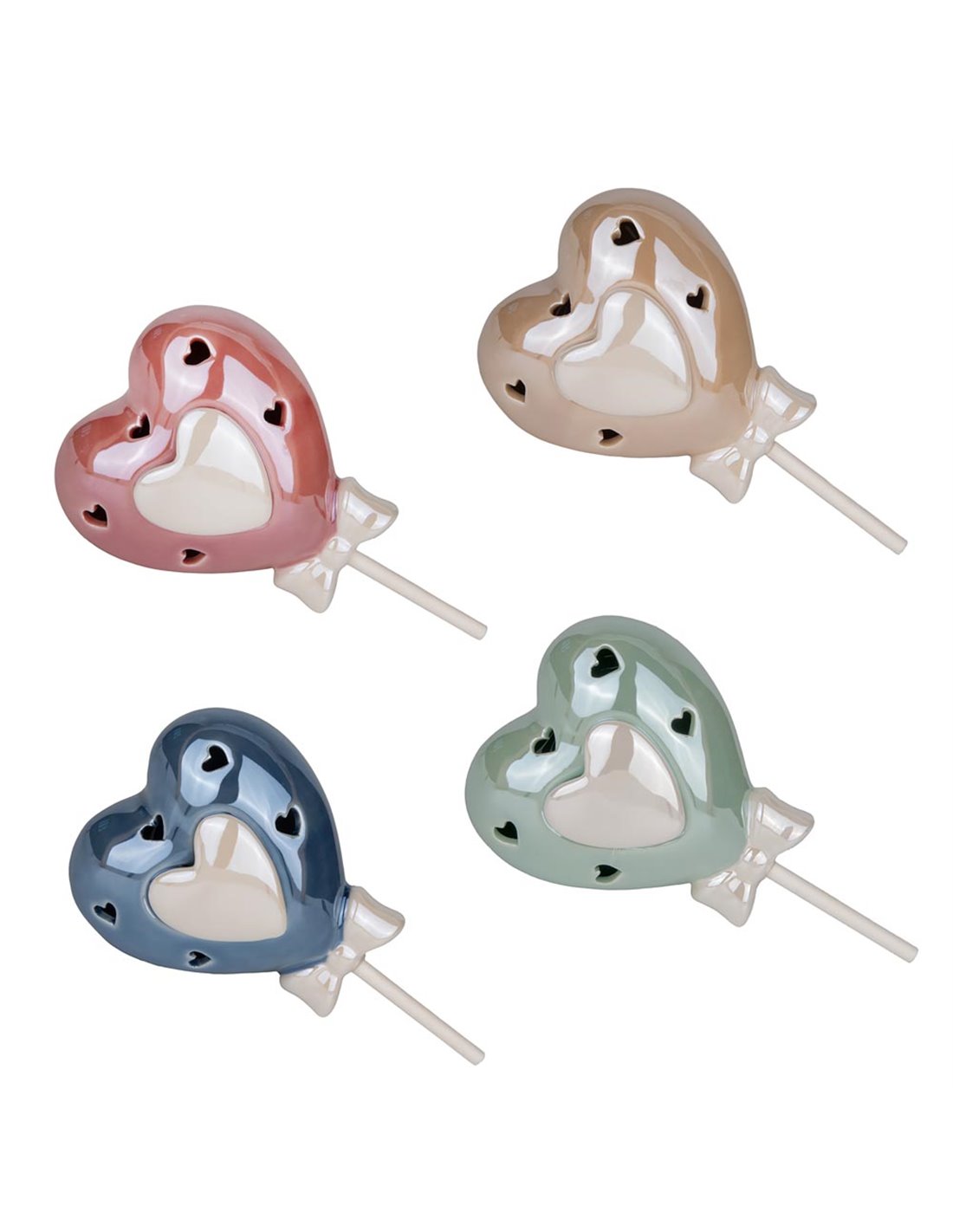 Cuore in porcellana con led in 4 colori assortiti. Lo troviamo in beige, rosso, blu e verde. E' alto 14 cm. Una bomboniera dolce che brilla d'amore. Il prezzo si riferisce alla confezione di 4 pezzi assortiti.