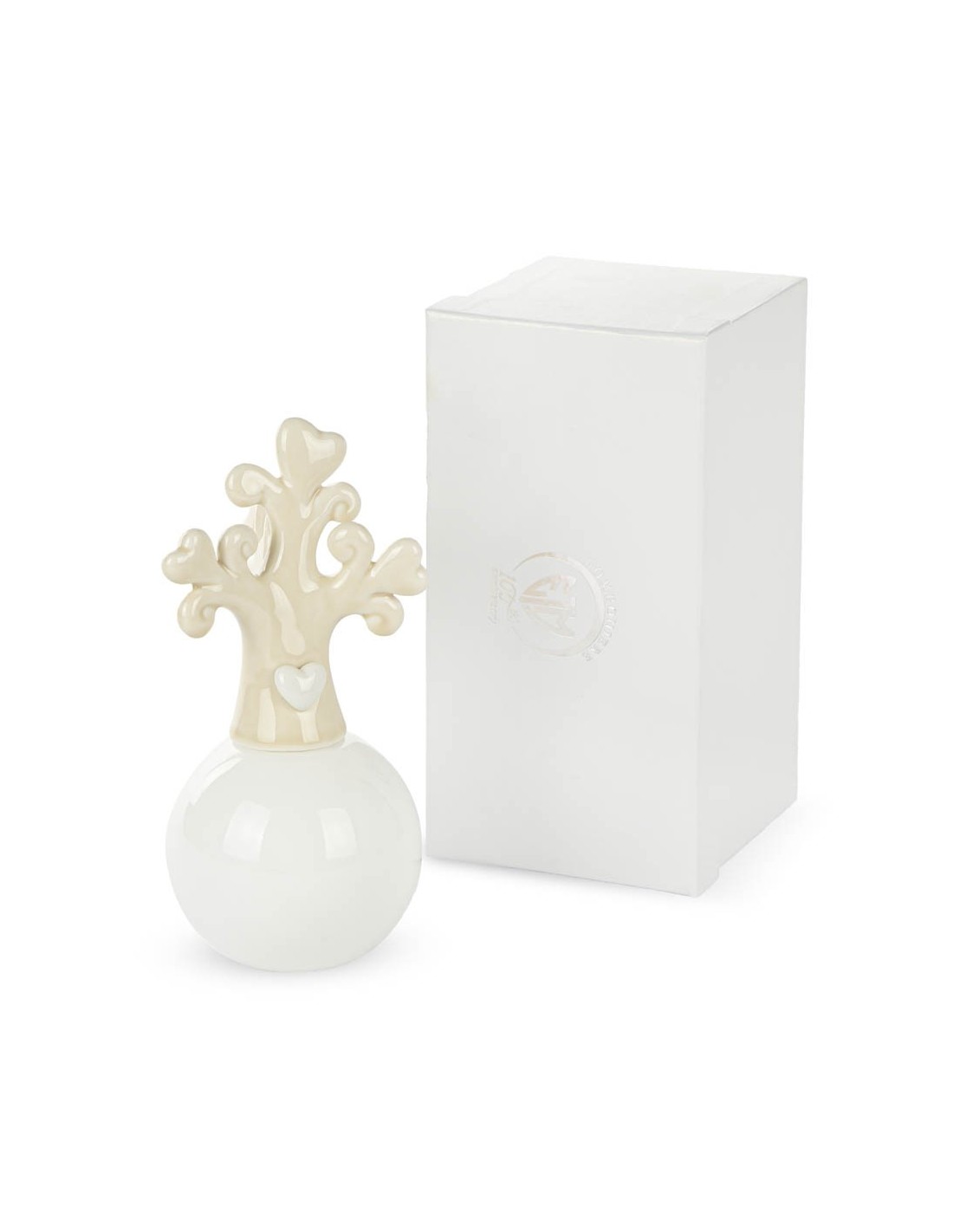 Bomboniera lampada albero crema in porcellana con scatola