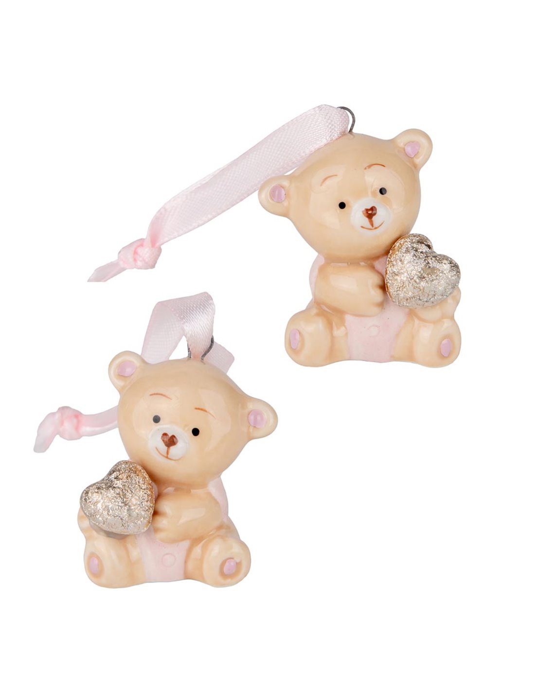 Bomboniera a forma di orsetto rosa da appoggio o da appendere. E' alta 4 cm ed è dotata di box in PVC. Un pensiero piccolo e dolce ideale per un battesimo. Il prezzo si riferisce alla confezione da 2 pezzi.