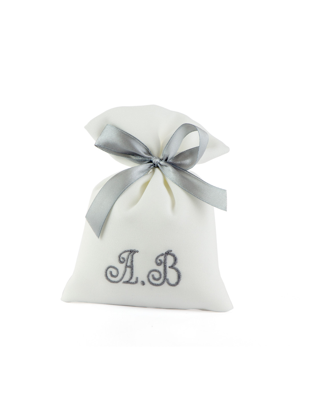 Bomboniera Porta Confetti Dritto Bianco Con Ricamo Iniziali Personalizzate Argento (10 PZ)