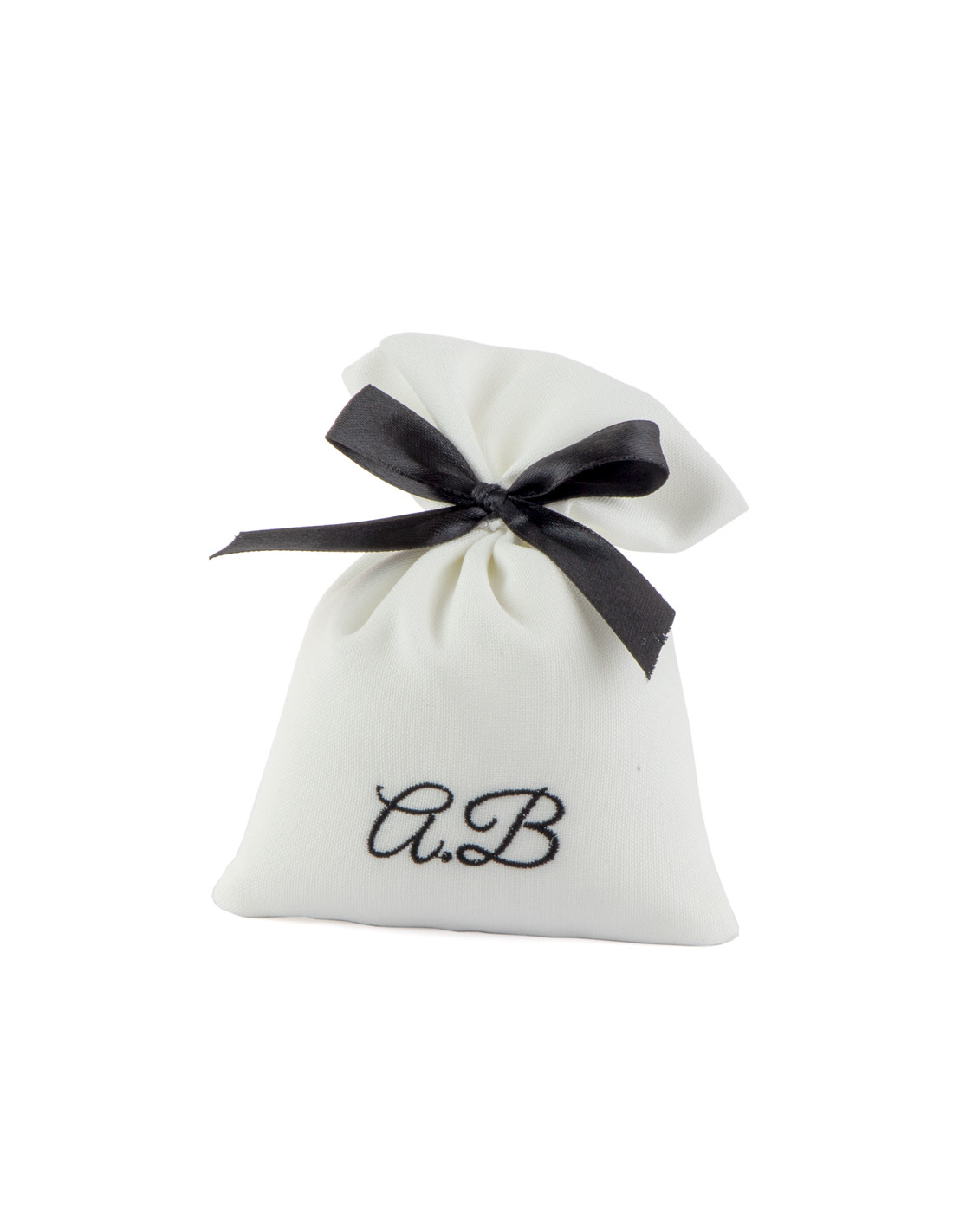 Bomboniera Porta Confetti Dritto Bianco Con Ricamo Iniziali Personalizzate Nero (10 PZ)