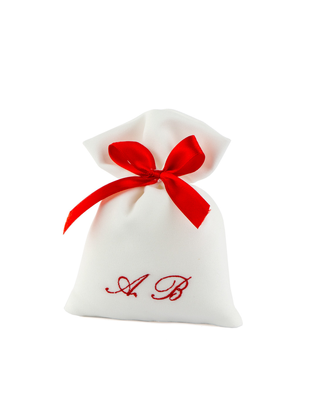 Bomboniera Porta Confetti Dritto Bianco Con Ricamo Iniziali Personalizzate Rosso (10 PZ)
