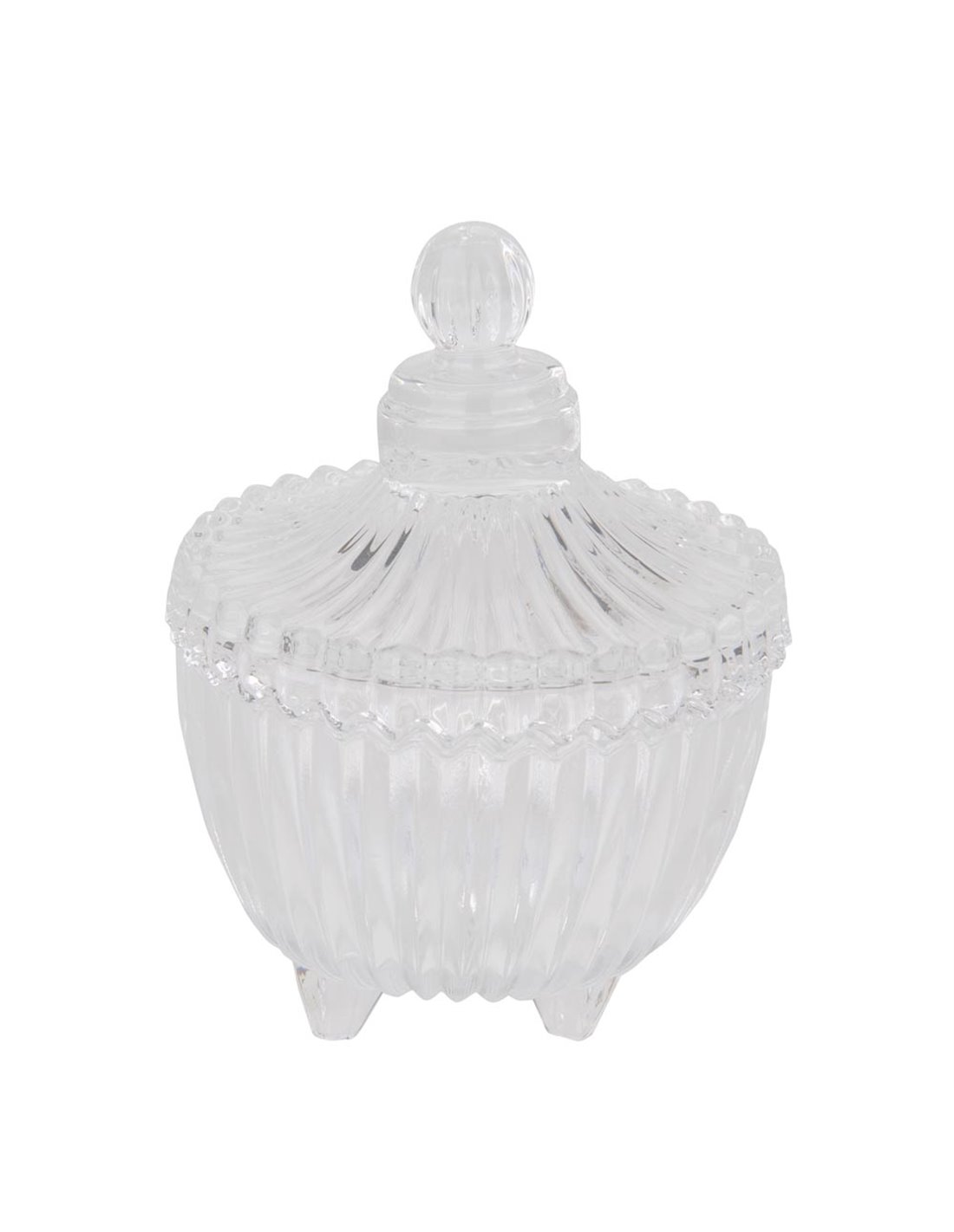 Bomboniera in cristallo rotonda con 3 piedi. Ha un'altezza di 9 cm. Il cristallo finemente lavorato lo rende un raffinato complemento d’arredo e un dono ideale per celebrare occasioni speciali.