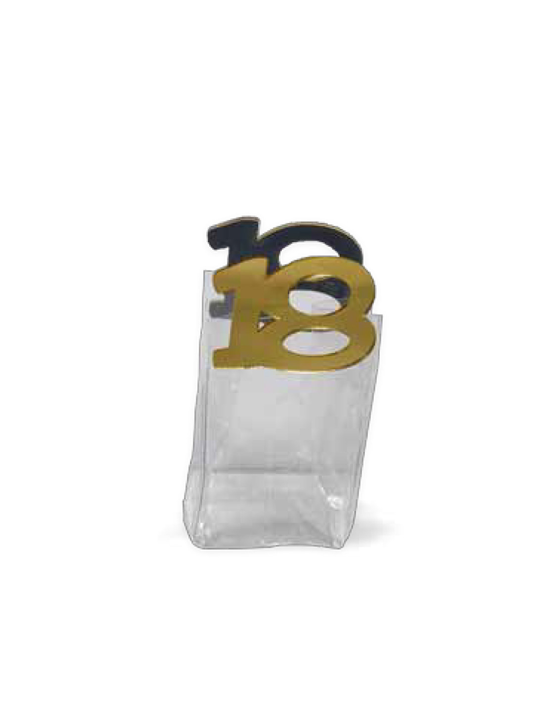 BORSETTA PVC CON PLEX 18ANNI 6X5X8H 60-12 ORO (12 PZ)