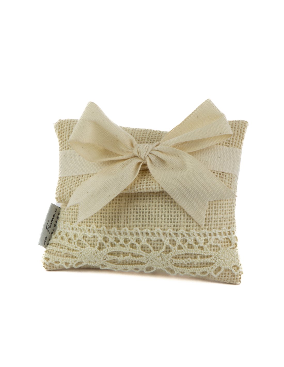 Busta Bomboniera Juta Con Merletto Panna (10 PZ)