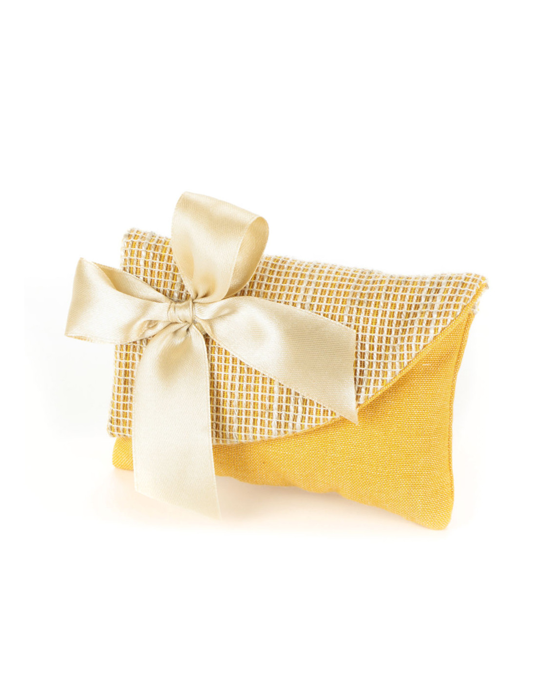 La bustina piccola senape dal tessuto rustico � un portaconfetti per tutte le occasioni: nascita, battesimo, comunione, cresima, matrimonio e anniversari.�
