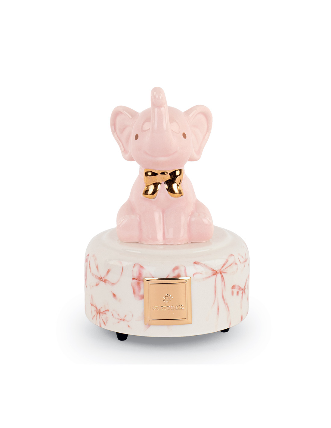 Carillon con elefantino rosa. Un pensiero dolce per un battesimo bimba. E' compreso di scatola.