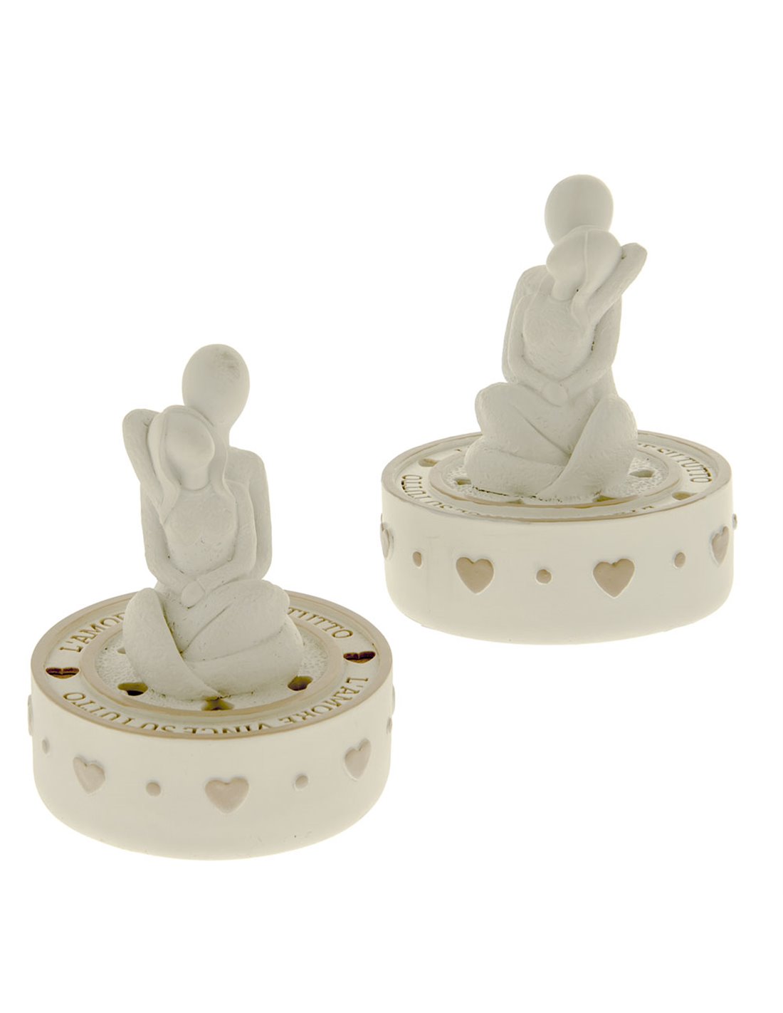 Bomboniera Coppia di innamorati che si abbraccia in due varianti. Perfetta come bomboniera Matrimonio, anniversario. Misura L 9.5 cm X H 10 cm. Il prezzo si riferisce alla confezione da 2 pezzi.