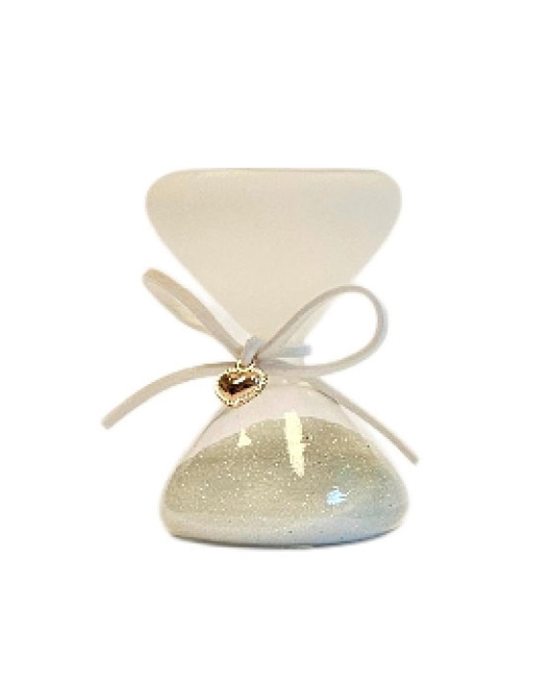 Clessidra In Vetro Satinata Bianca Cuore Oro Con Scatola