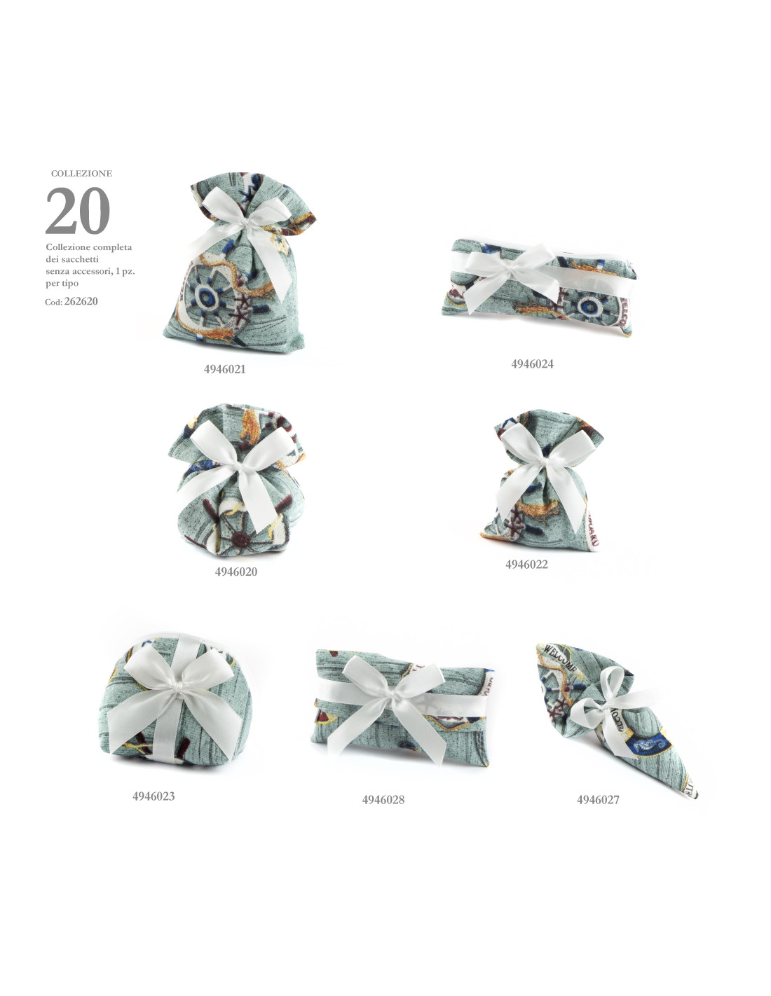 Le nostre collezioni ti permettono di avere l'assortimento di tutti i nostri sacchettini portaconfetti della nuova Collezione Bomboniere 2026. Acquista la collezione sacchetti che preferisci ad un prezzo imperdibile, La Collezione Life è composta da 1 sacchetto per tipo ed il prezzo si riferisce alla composizione da 7 sacchetti. Prodotti rigorosamente Made in Italy.