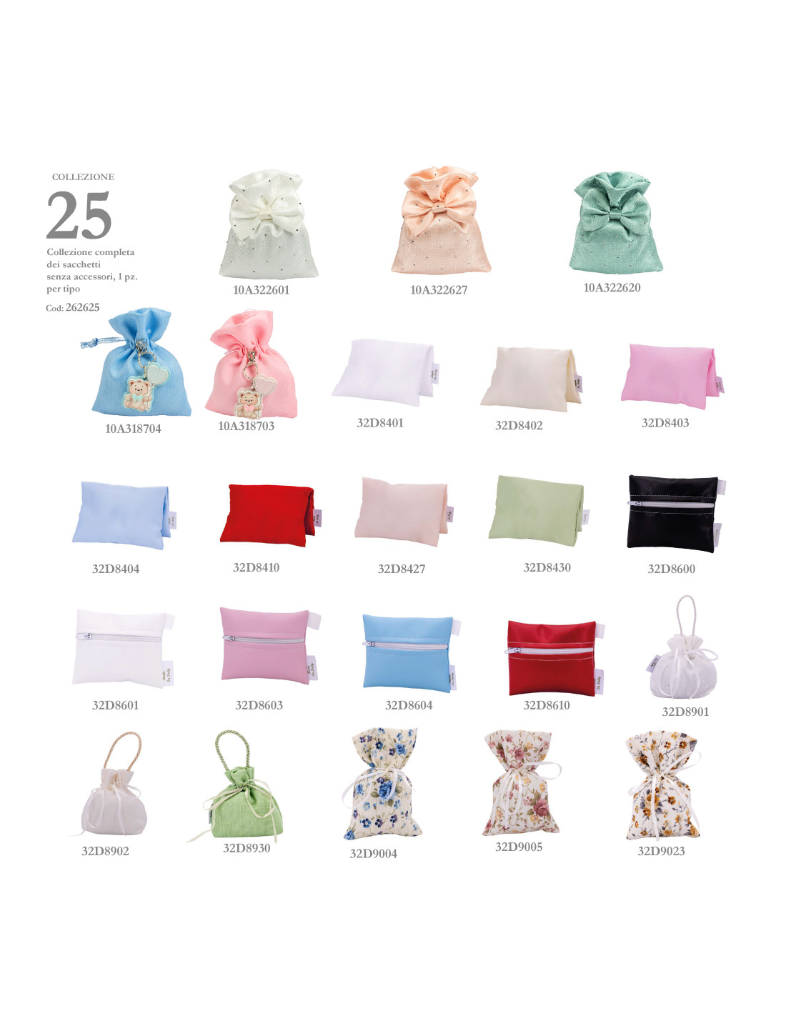 Le nostre collezioni ti permettono di avere l'assortimento di tutti i nostri sacchettini portaconfetti della nuova Collezione Bomboniere 2026. Acquista la collezione sacchetti che preferisci ad un prezzo imperdibile, La Collezione Zip è composta da 1 sacchetto per tipo ed il prezzo si riferisce alla composizione da 23 sacchetti.