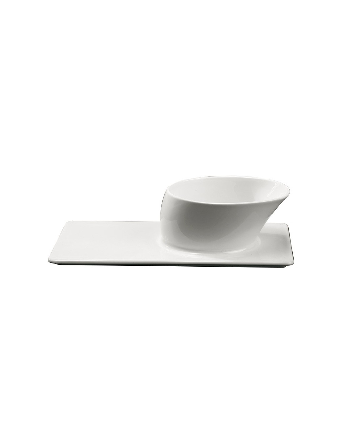Coppa in fine porcellana bianca con piattino incorporato. Questo permette di posizionarvi vari alimenti quali marmellata, fette biscottate, cialde, ecc. come fosse un vero piatto. Un oggetto ideale per la colazione o per servire sfiziosi dessert al cucchiaio.