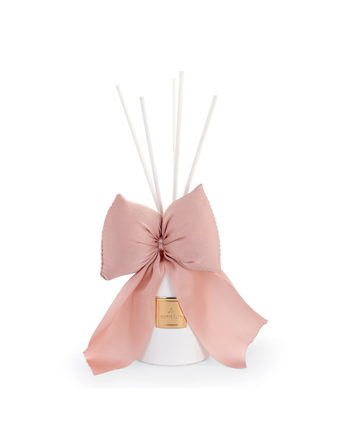 Diffusore per ambienti di 80 ml con fiocco cipria. E' dotato di scatola decorata da fiocchetti. Un dono profumato e carino adatto a molte occasioni.