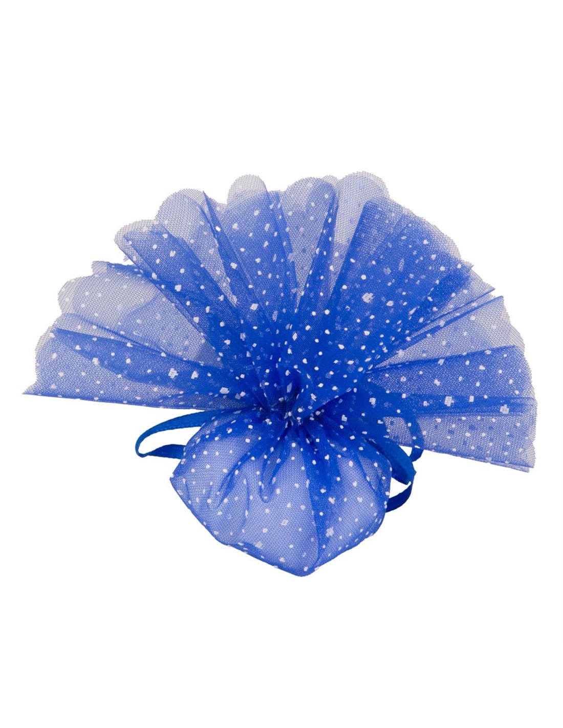 Fazzoletto Velo di Fata tondo smerlato screziato di colore blu. Composto da 2 veli accoppiati con tirante ha un diametro da 25 cm. Il prezzo si riferisce alla confezione da 25 pezzi.