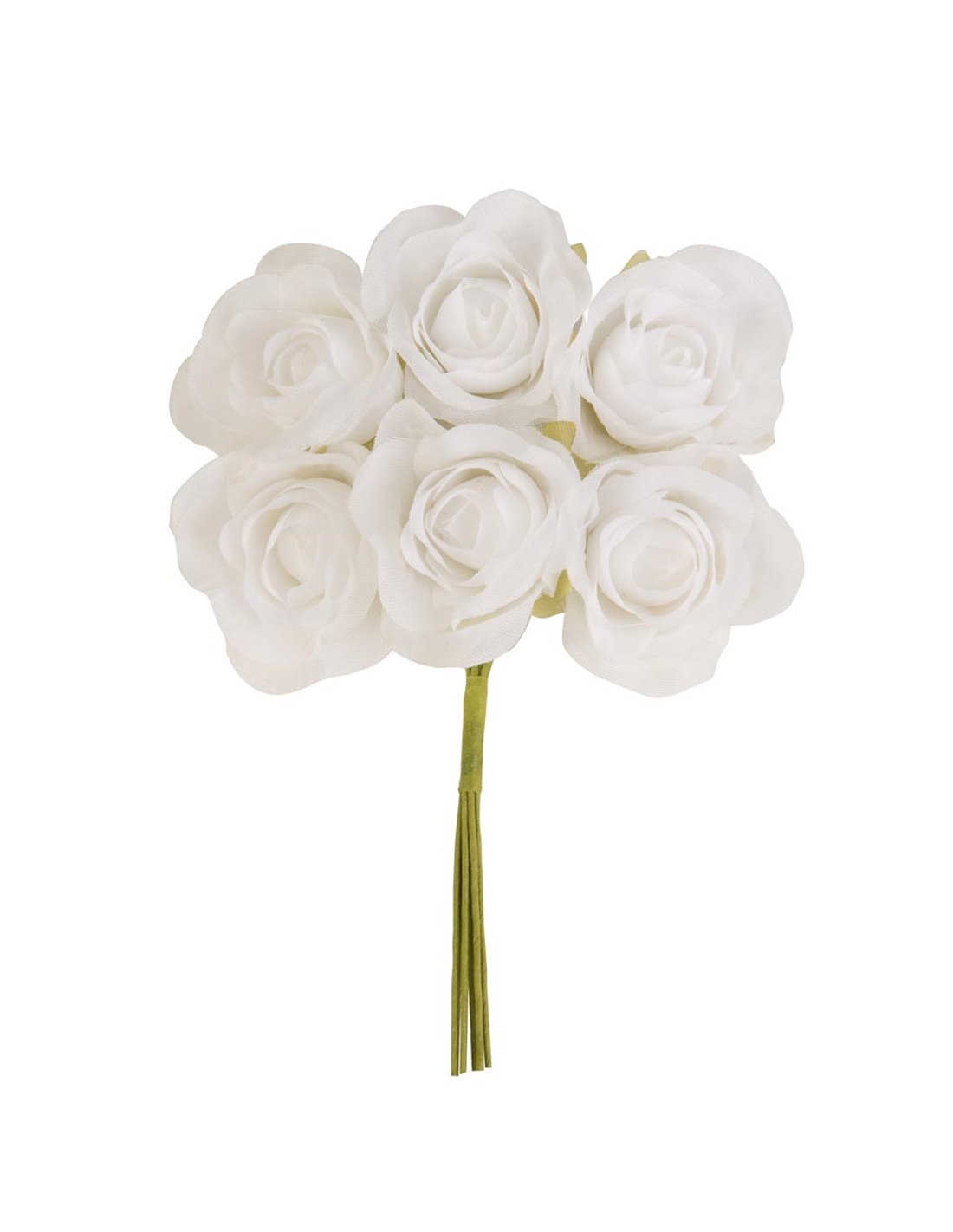 Fiore bomboniera rosetta di colore bianco. Ha un diametro di circa 4 cm ed è ideale per confezionare sacchetti, bomboniere per matrimonio ed altri eventi. Il prezzo si riferisce alla confezione da 72 pezzi.