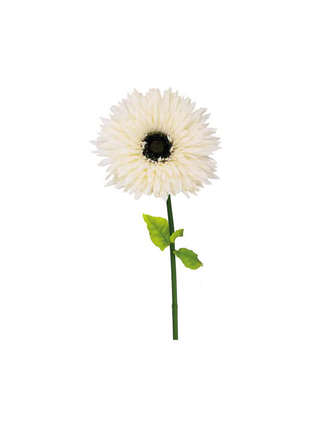 Gerbera artificiale grande panna. La dimensione ed il colore del fiore aggiungono volume e luminosità a qualsiasi ambiente per un allestimento esclusivo. Ideale per wedding o qualsiasi altro evento.