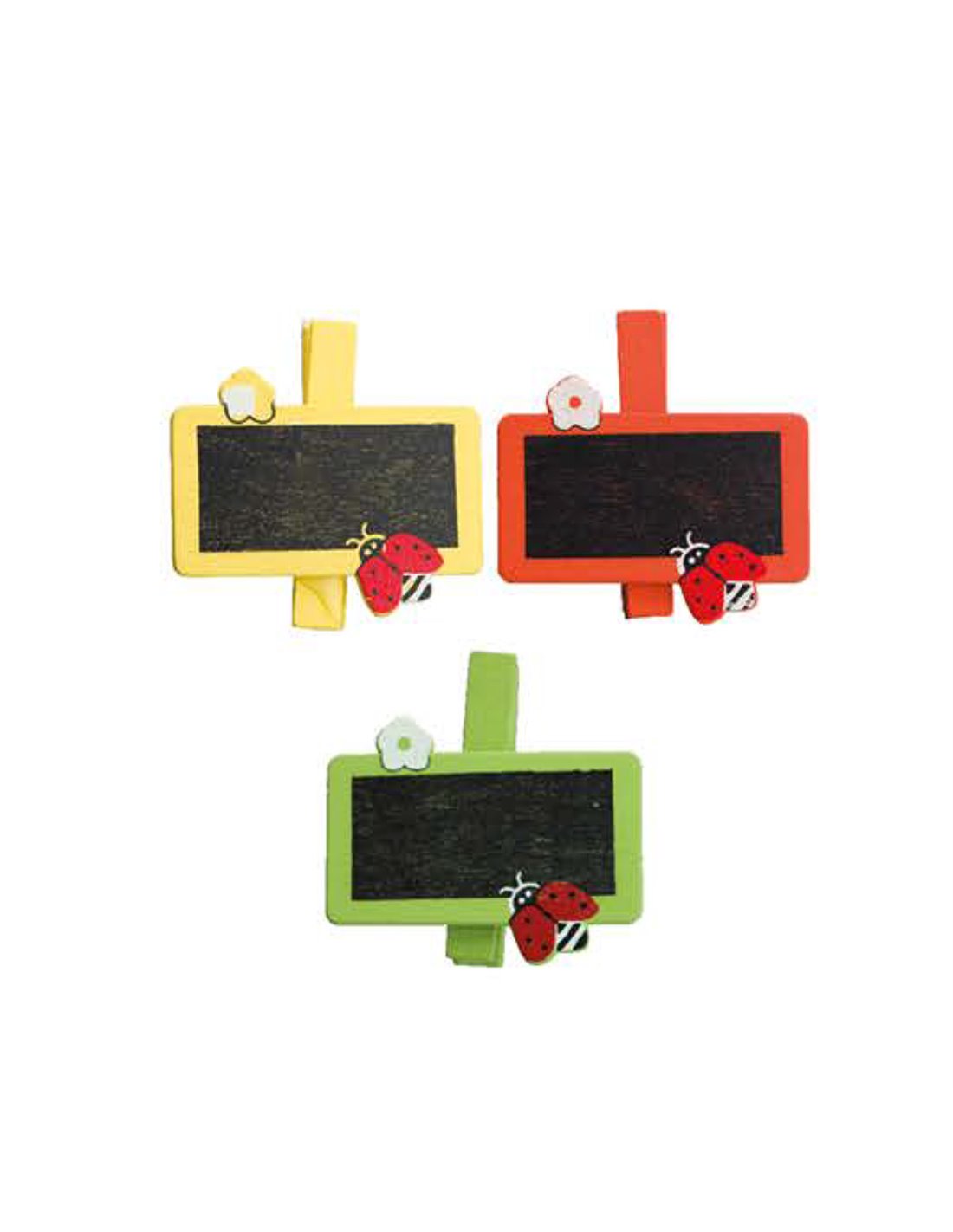 Mollettina di legno con lavagnetta e coccinella. Il prezzo si riferisce alla confezione da 6 pezzi assortiti.
