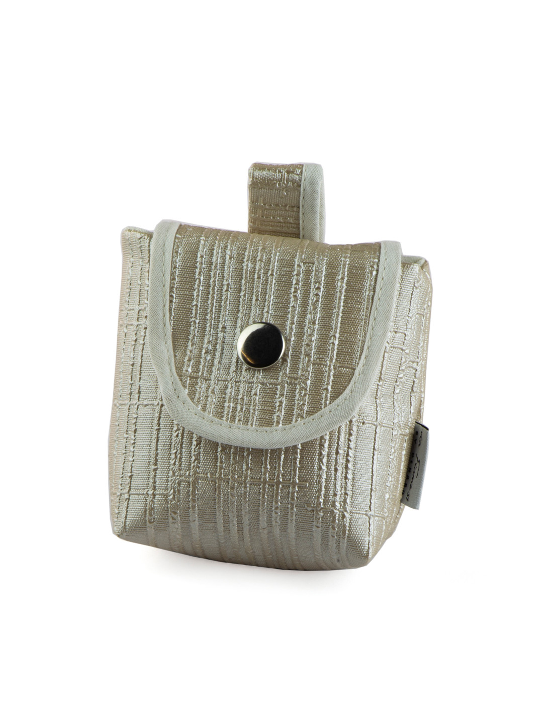 Piccola bomboniera beige con bottone e manico. Ideale per contenere piccoli oggetti. Made in Italy.