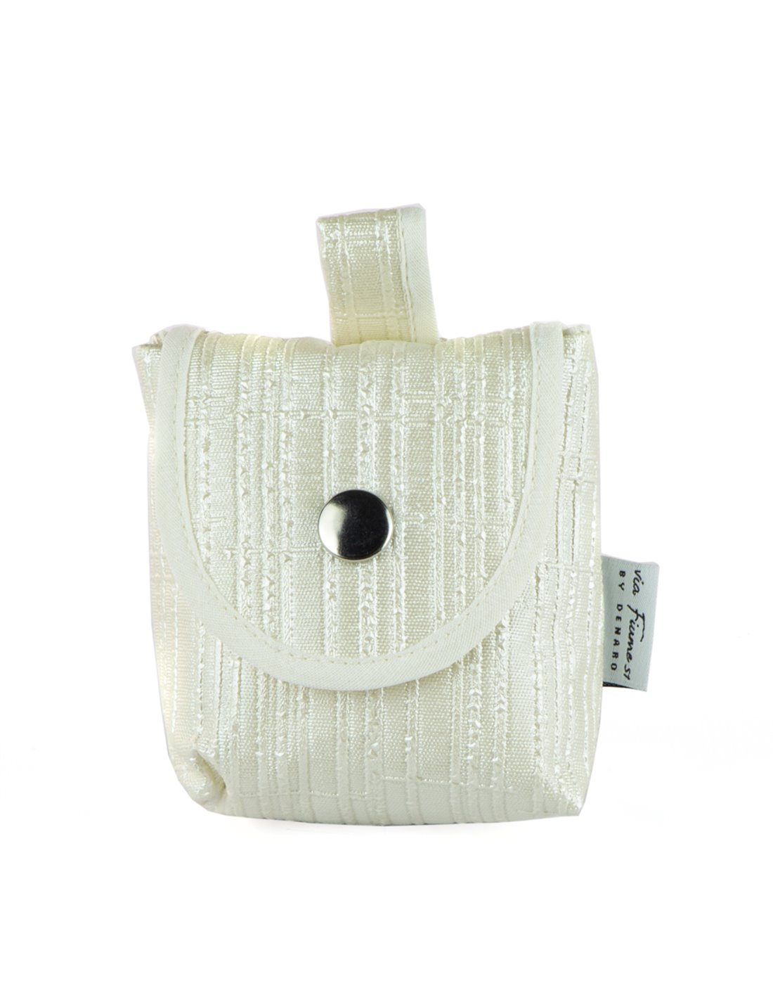 Piccola bomboniera panna con bottone e manico. Ideale per contenere piccoli oggetti. Made in Italy.