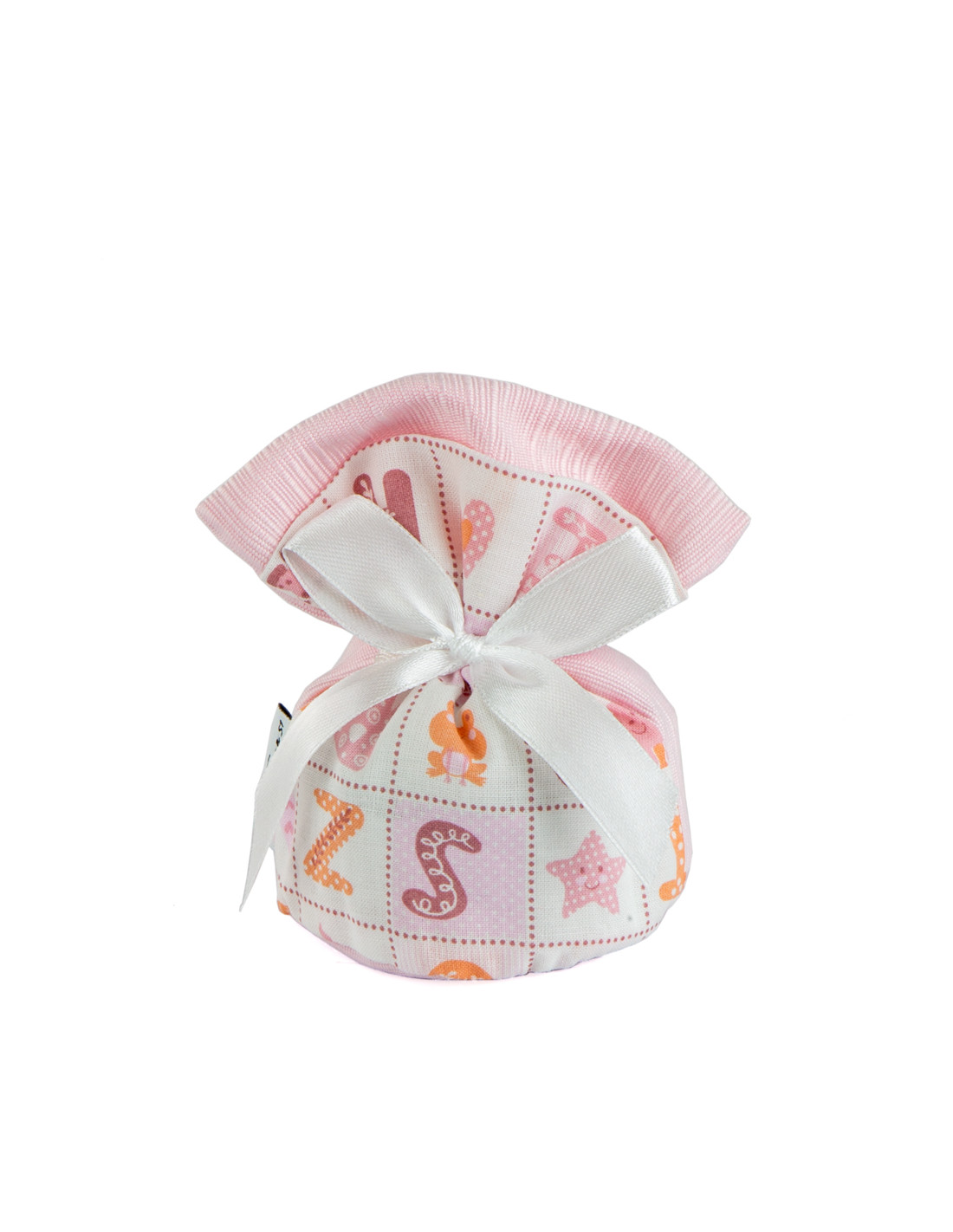 Sacchetto bomboniera Dritto rosa in versione piccola. Dotato di base con scatola interna. Un dolce dono per un battesimo bimba. Made in Italy. Il prezzo si riferisce alla confezione da 10 pezzi.