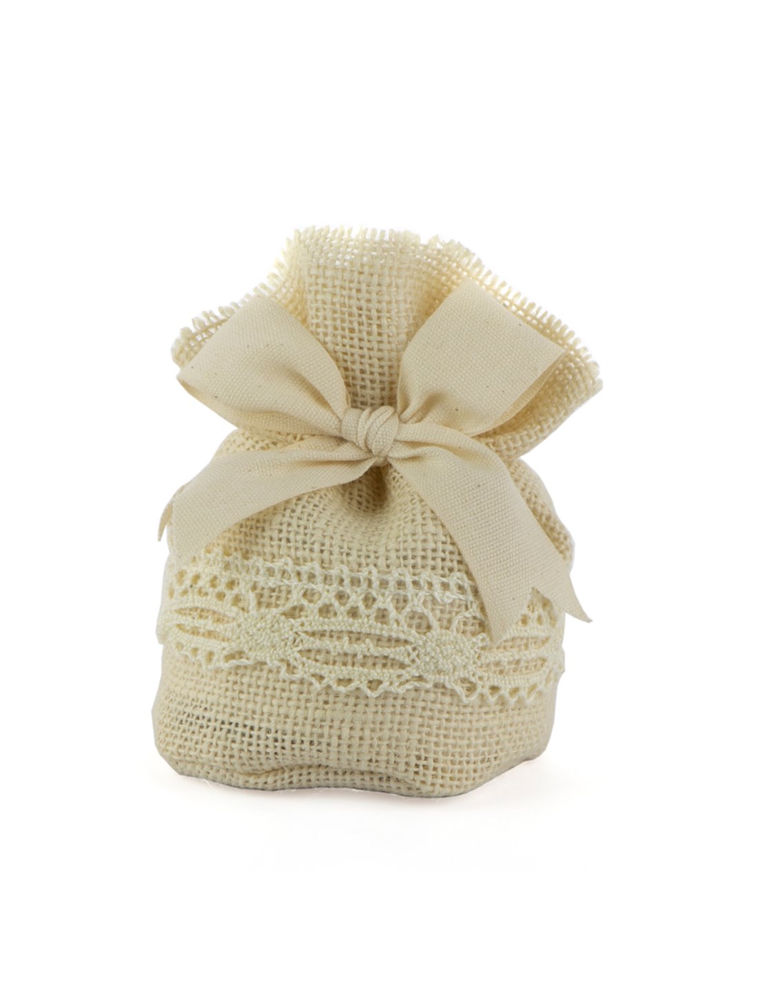 Sacchettino Bomboniera Juta Con Merletto E Base Panna (10 PZ)