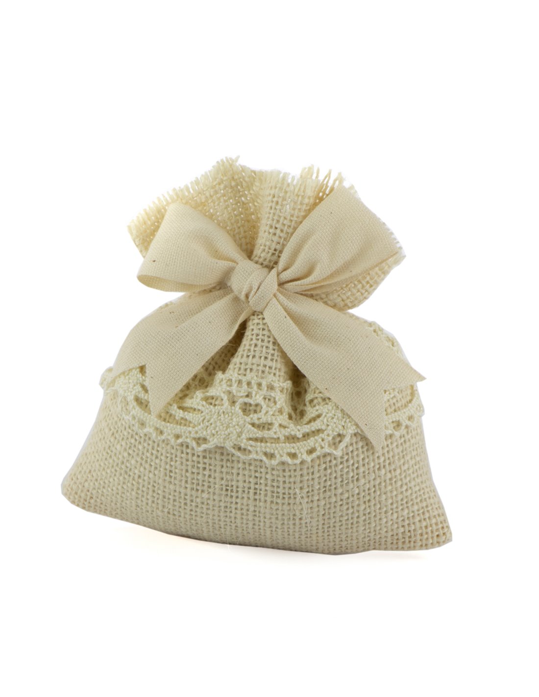 Sacchetto Bomboniera Dritto Juta Con Merletto Panna (10 PZ)