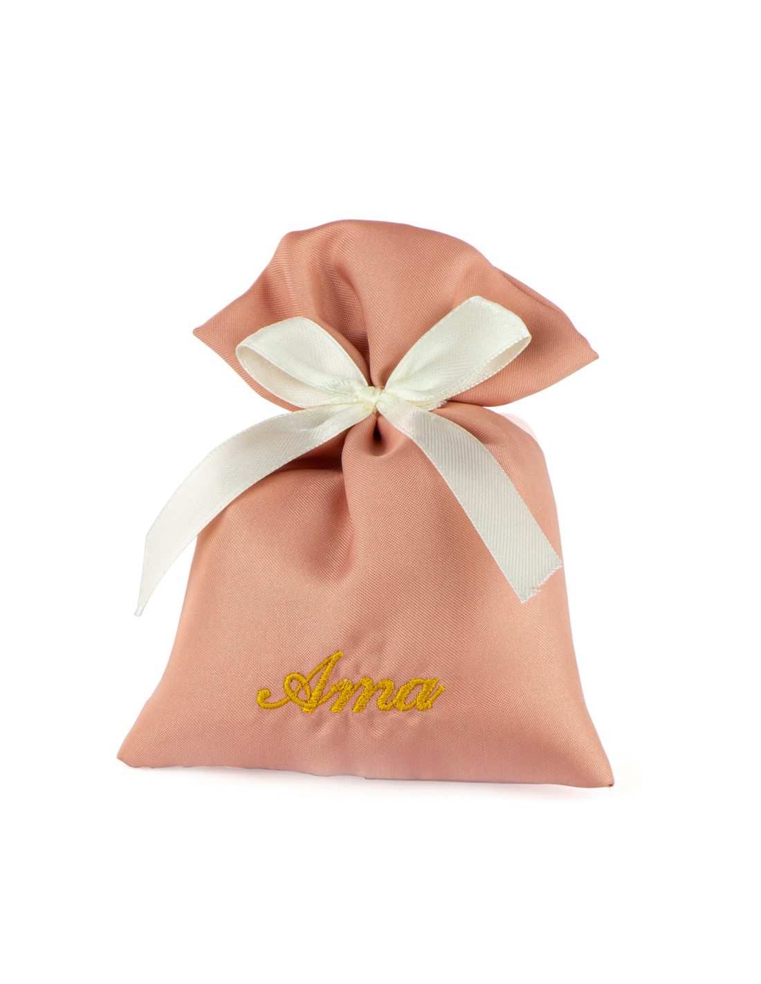 Sacchetto Bomboniera Dritto Rosa Antico Con Ricamo Ama In Oro (10 PZ)