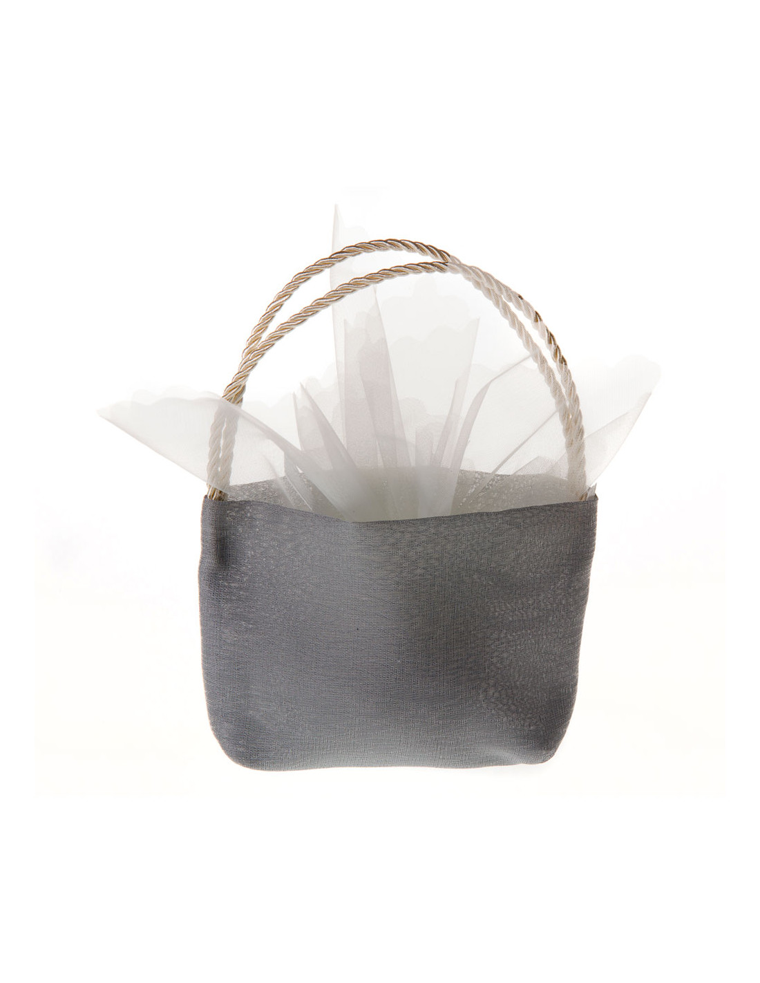 Borsetta argento con manici, ideale per confezionare confetti per matrimonio e nozze d'argento.