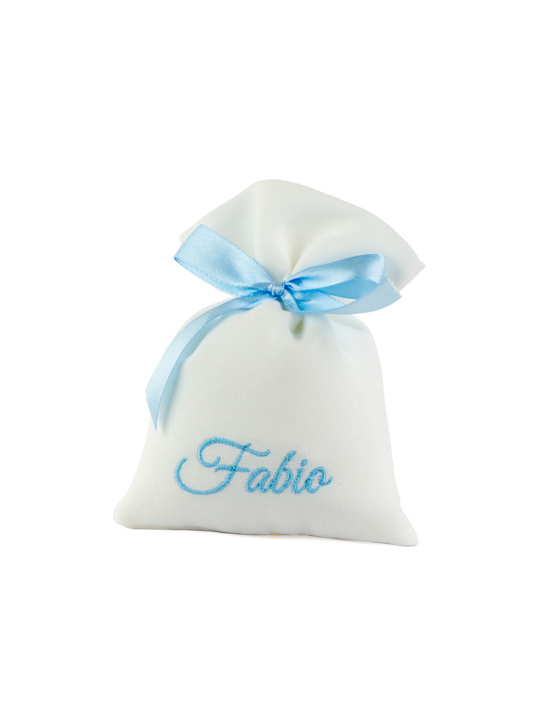 Sacchetto Dritto Bianco Con Ricamo Personalizzato Celeste (10 PZ)