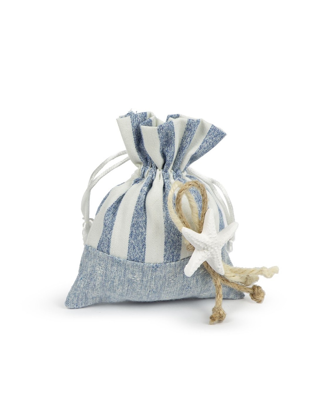 Sacchetto portaconfetti linea mare bianco e blu con applicazione stella marina (12 pz)