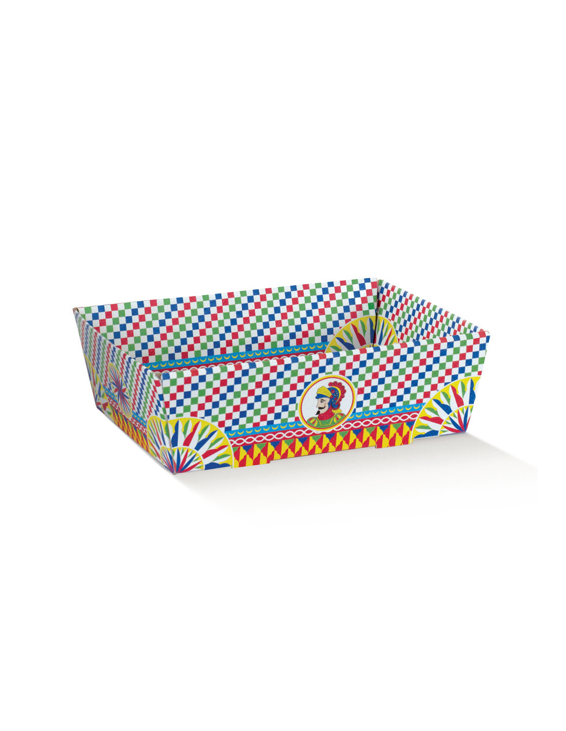 Vassoio pasticceria Mediterraneo versione piccola. Ornata con varie fantasie colorate.