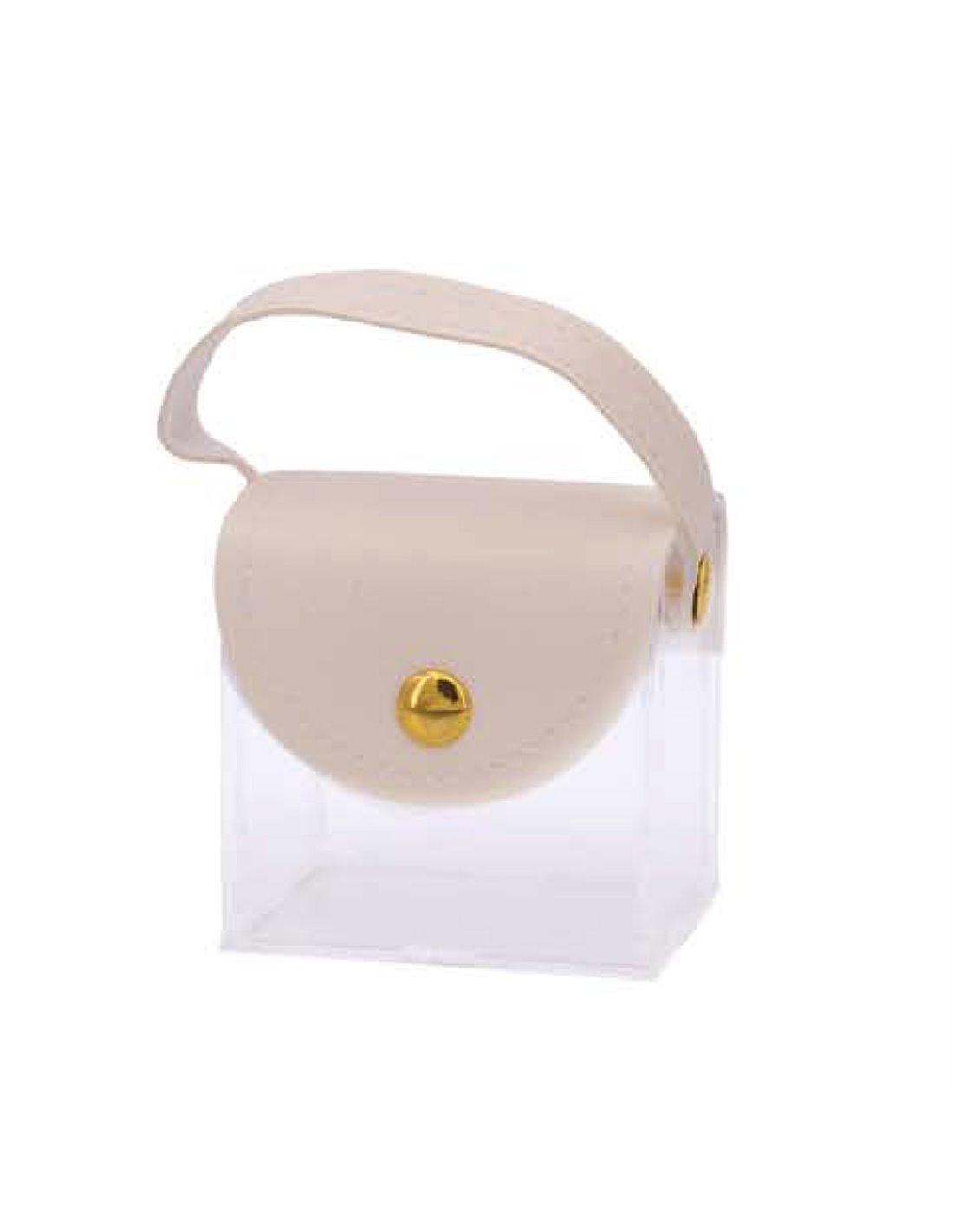 Scatoline in plex con chiusura in pelle avorio. Ideale per contenere confetti, piccoli ricordi o gioielli.