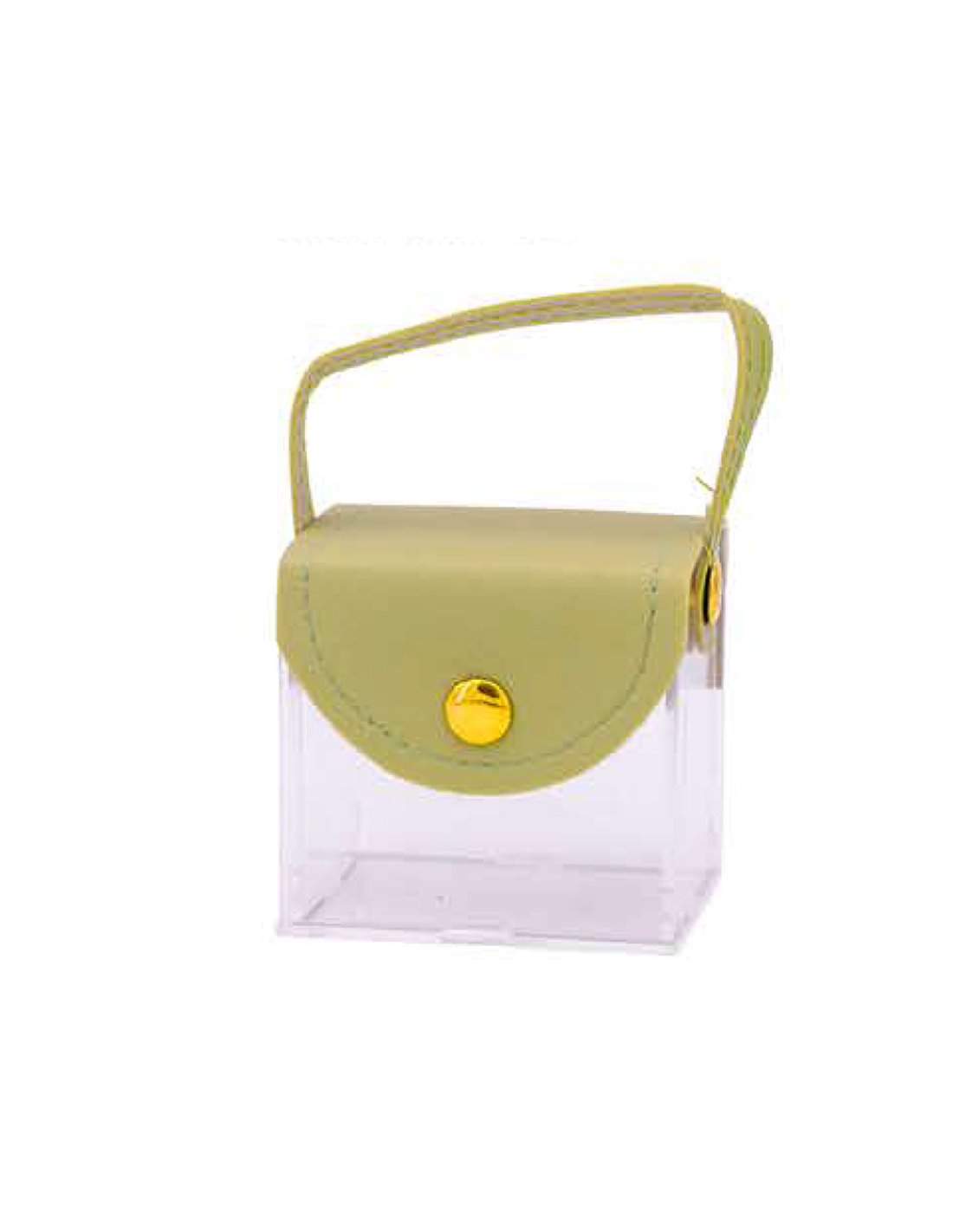 Scatoline in plex con chiusura in pelle verde salvia. Ideale per contenere confetti, piccoli ricordi o gioielli.