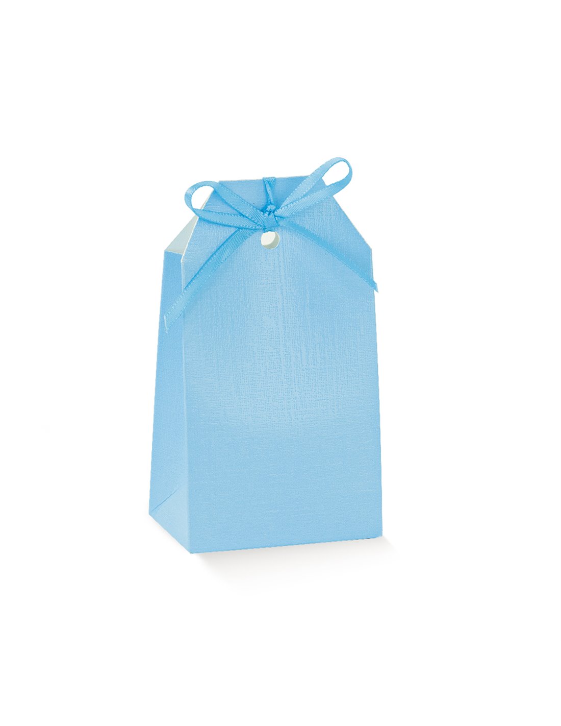 Scatola portaconfetti Tag Fibra azzurra. Il prezzo si riferisce alla confezione da 10 pezzi della sola scatolina ad esclusione del nastro di chiusura che si può trovare nella relativa categoria.
