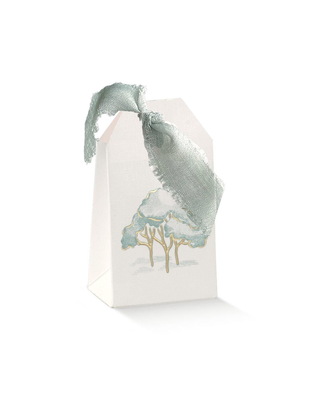 Scatola Portaconfetti Tag Trees Verde Salvia e Oro 5,5X3,5X10 Cm (10 PZ)