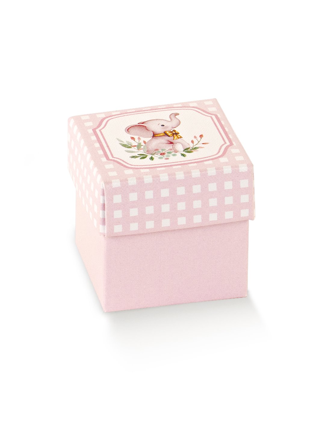 Scatolina Portaconfetti Elefantino Rosa 5X5X5 Cm (10 PZ)