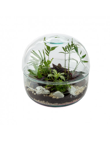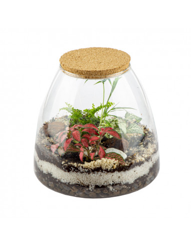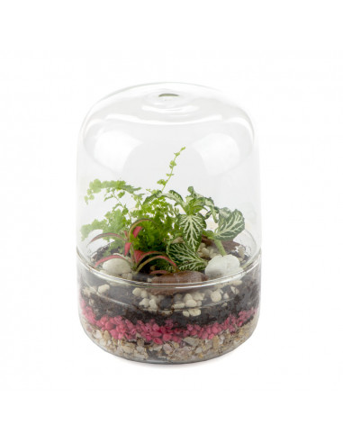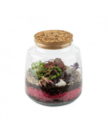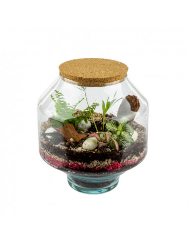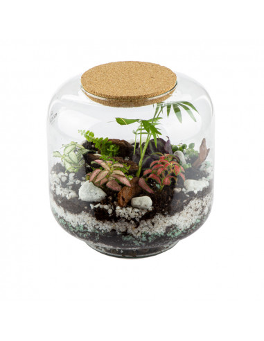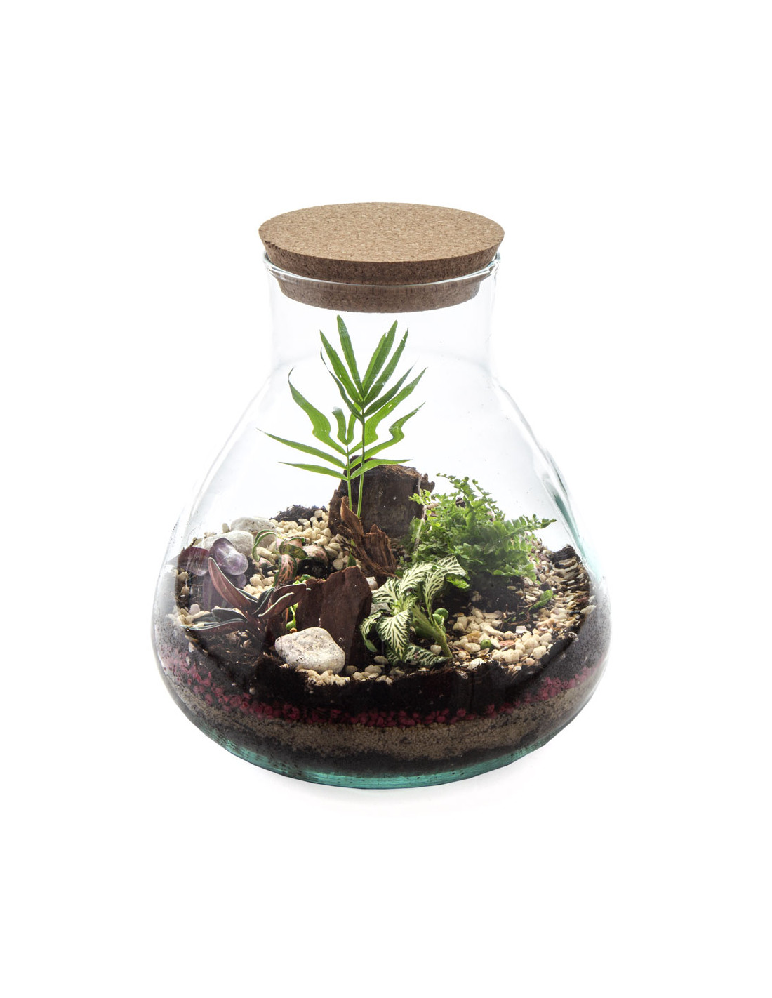 Qui trovi raggruppati tutte le varianti di Terrarium disponibili. Scorri l'elenco in basso, scegli il terrarium che desideri e aggiungili al carrello. I nostri terrarium sono delle composizioni naturali con piante tropicali come la felce, fittonia e muschio. Il paesaggio naturale è ricreato da diversi materiali come la terra, ghiaia colorata e arricchita da ciotoli e corteccia naturali. Il contenitore elegante chiuso con un tappo in sughero ricrea un piccolo ecosistema perfetto.