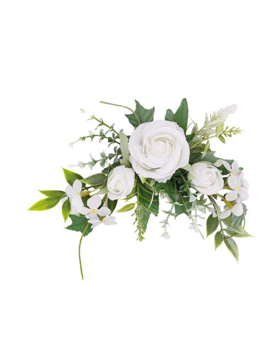 Tralcio decorativo con rose bianche. Ideale come allestimento per eventi. Il prezzo si riferisce alla confezione da 10 pezzi.