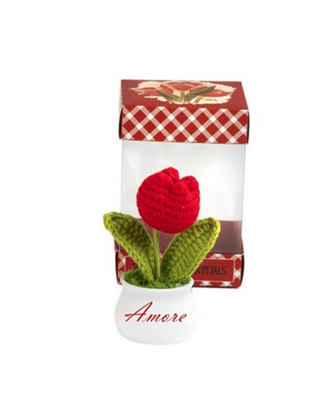 Vasetto Tulipano Rosso Lavorato A Maglia Con Box